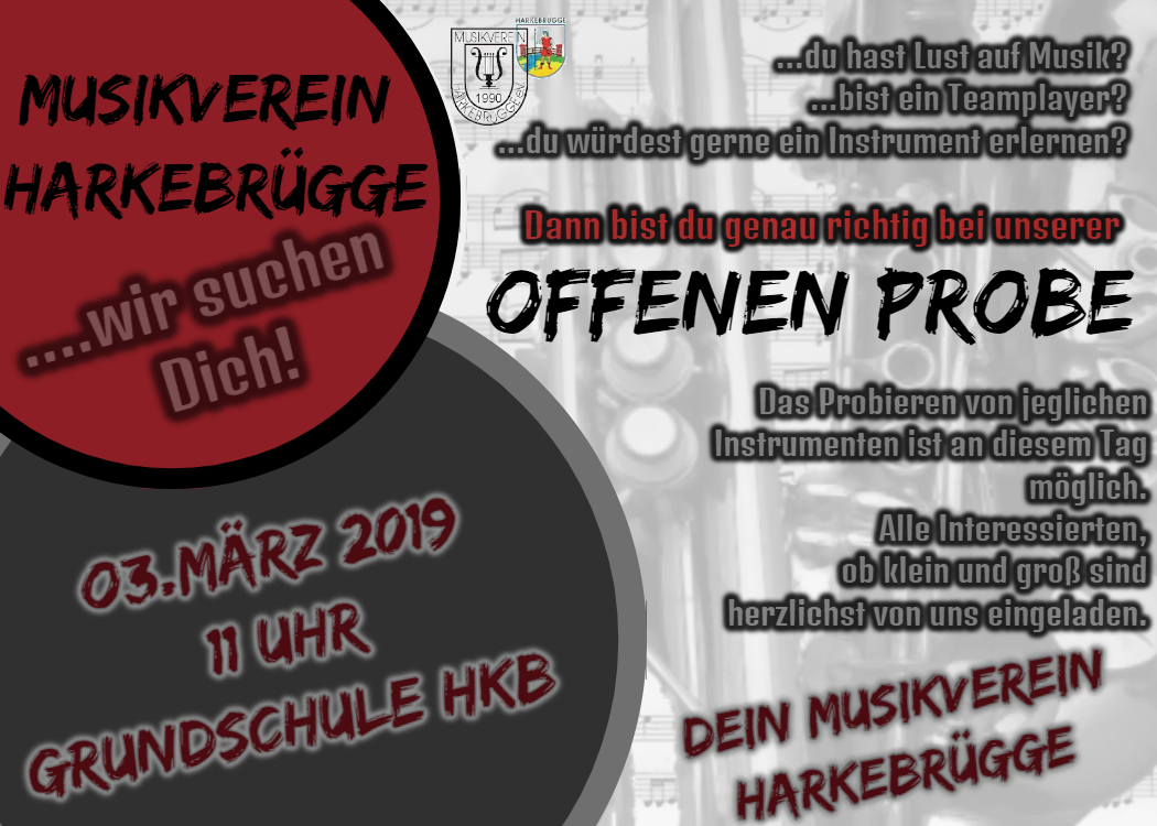 Wie auch im letzten Jahr findet in der Pausenhalle der Grundschule wie eine offene Probe statt. Findet den Weg zur Musik und euerem Instrument.