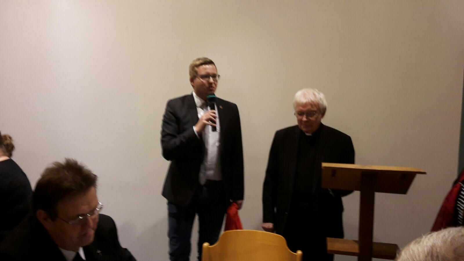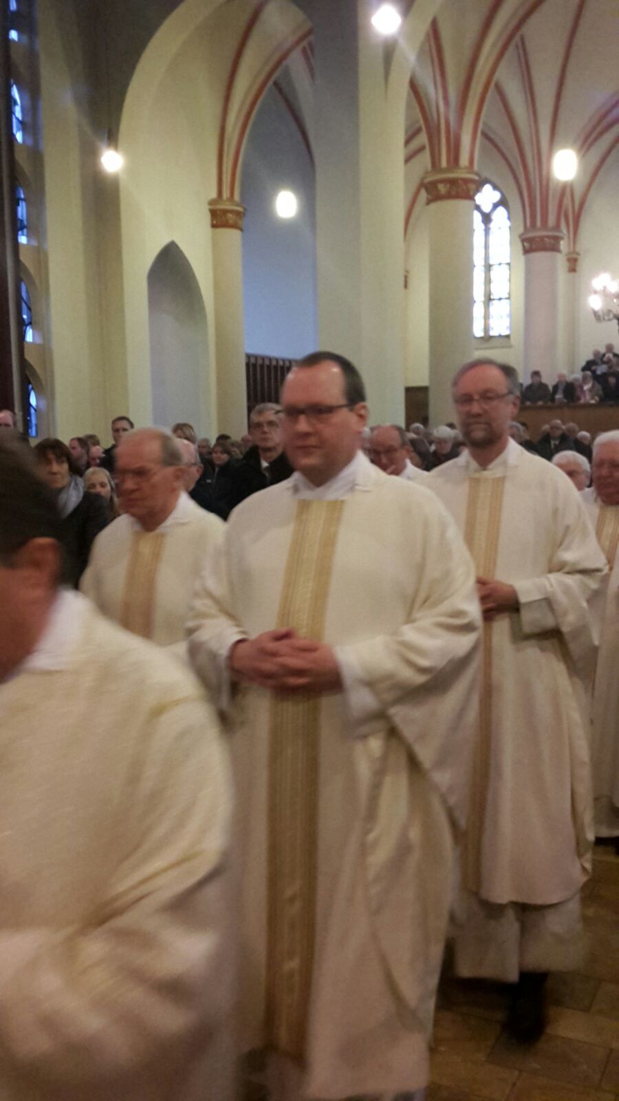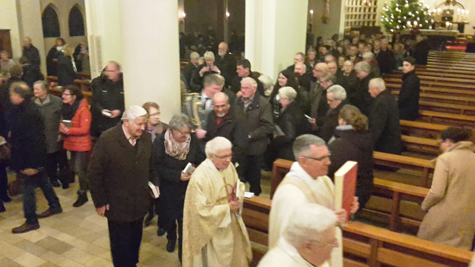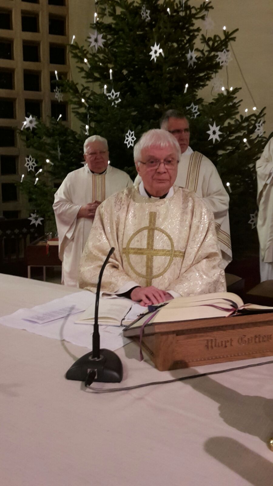 Wir danken ihm für seinen treuen Dienst in St. Marien und in St. Ansgar, wünschen Gesundheit und Gottes reichen Segen für sein priesterliches Wirken in dem Sinne, dass er aus weiterhin – nach seinen Kräften – Helfer unserer Freude am Glauben sein kann. (Zitat vom Gesangszettel zur Eucharistiefeier)