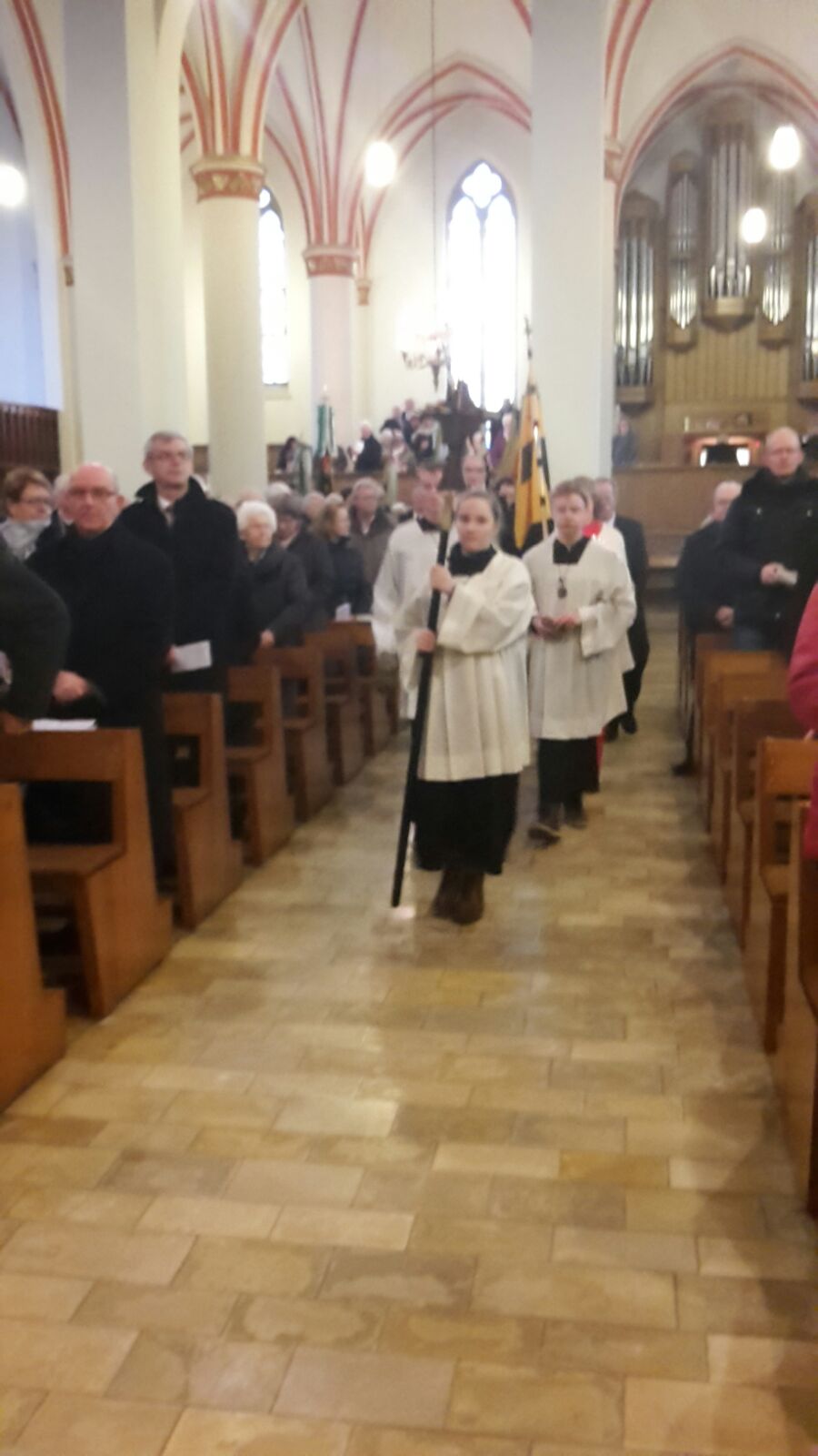 Harkebrügge, 06.01.2107 – Die Feier zum 50 jährigem Priesterjubiläum begann mit einer sehr schönen und emotionalen Eucharistiefeier in der St. Marien Kirche in Harkebrügge. Die gesamte Gemeinde war eingeladen, die Kirche komplett gefüllt. Die Vereine der Gemeinde Barßel entsandten Fahnenabordnungen. Alles in einem ein sehr schönes und feierliches Bild.