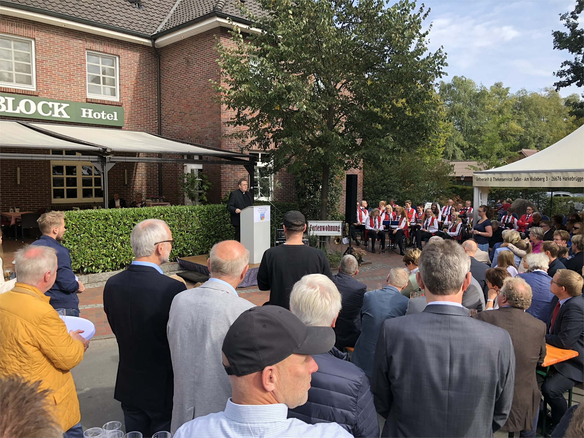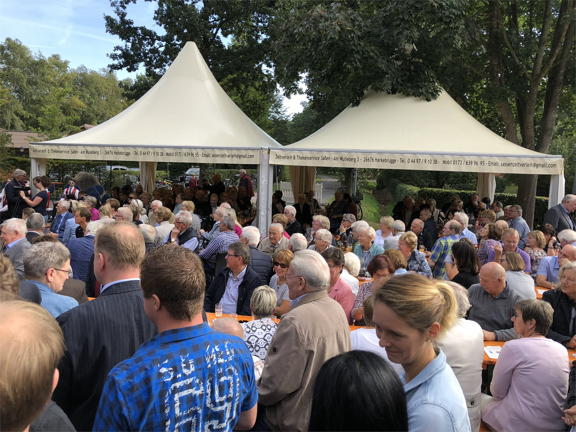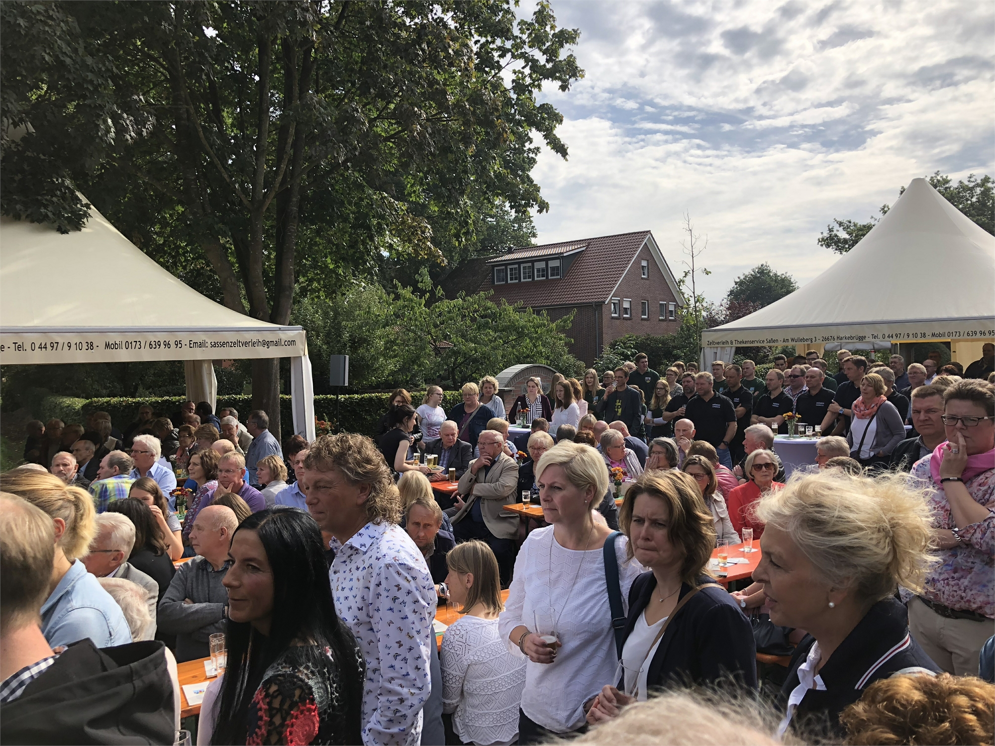 Harkebrügge 16.09.2018 – Es ist vollbracht: Die Bürgerstiftung Dorfgemeinschaft Harkebrügge feierte am Sonntag bei bestem Sonnenschein am Brunnenplatz beim Gasthaus Block in Harkebrügge ihre Gründung. Vor rund 350 Gästen sprachen der Vorsitzende der Bürgerstiftung, Hans Eveslage, und der Vorsitzende des Stiftungsrates, Klaus Claassen, über die Stiftungsziele sowie bereits umgesetzte Projekte. „Mithilfe der 121 Stifter wollen wir Gutes tun für die Zukunft unseres Dorfes. 80 350 Euro wurden der Stiftung bereits anvertraut“, sagte Eveslage. Die Bürgerstiftung habe sich unter anderem die Förderung der Jugend- und Altenhilfe aber auch von Sport, Kunst und Kultur zum Ziel gesetzt. Ein erster Meilenstein sei die zukünftige Nutzung des ehemaligen Pfarrhauses als Heimathaus gestartet. Ein weiteres Projekt sei der Beitrag für die Einrichtung eines neuen Gruppenraumes im Kindergarten Harkebrügge.