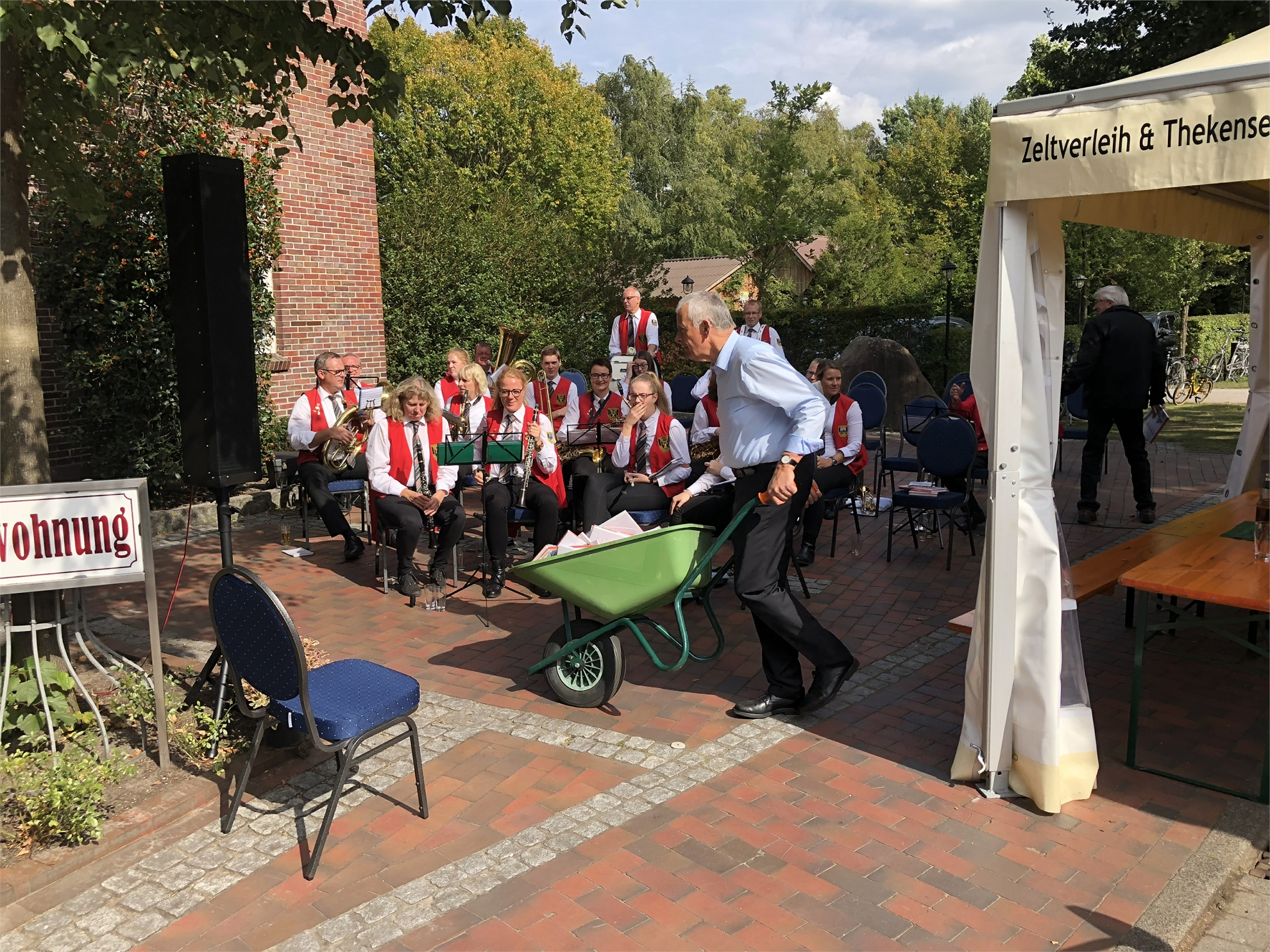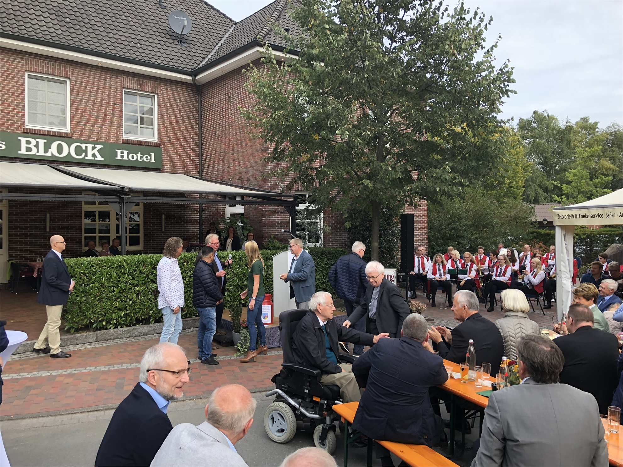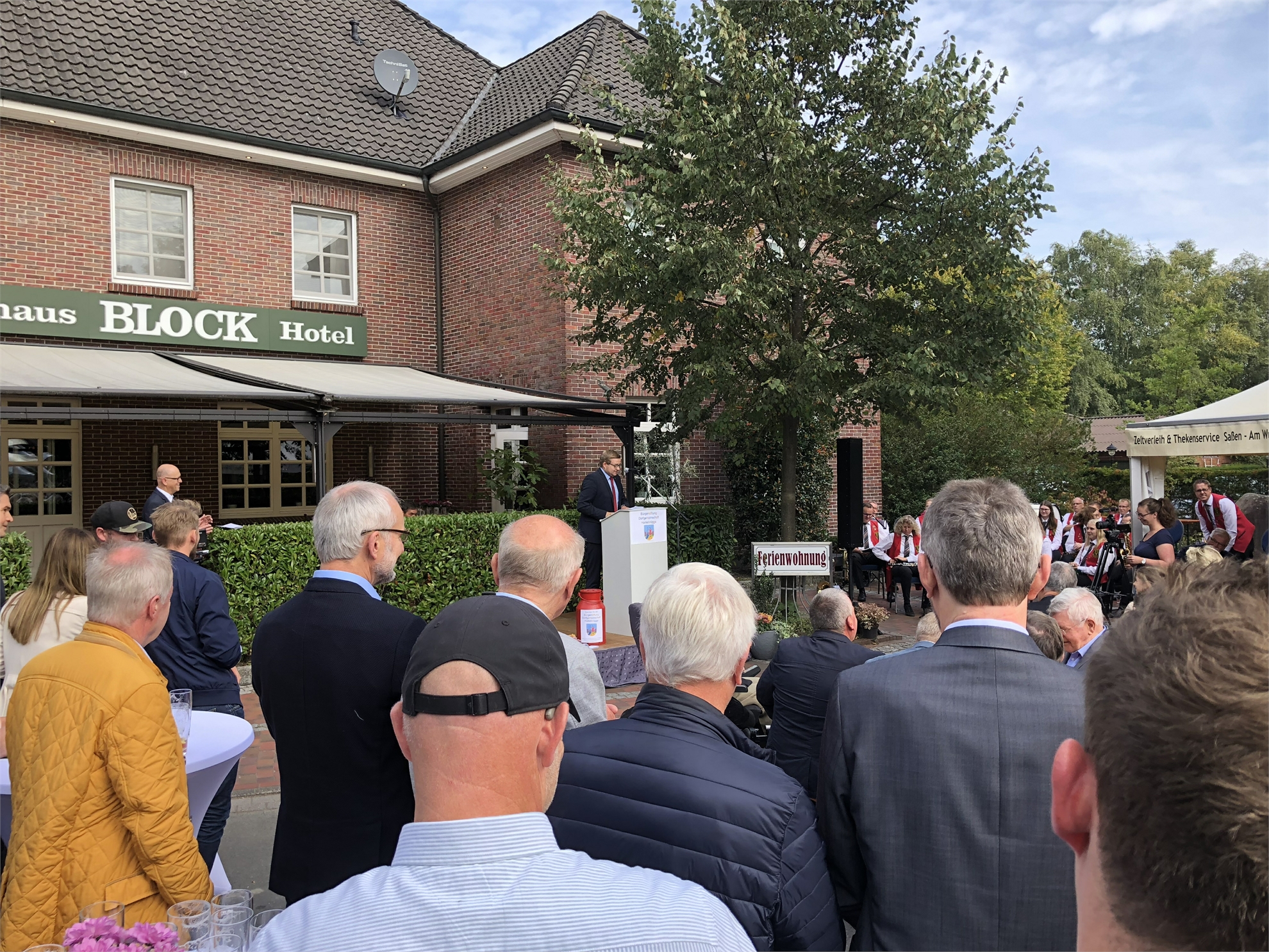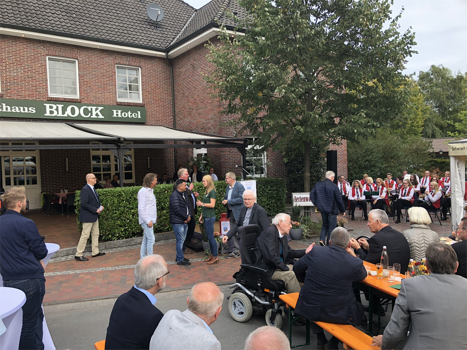 Harkebrügge 16.09.2018 – Es ist vollbracht: Die Bürgerstiftung Dorfgemeinschaft Harkebrügge feierte am Sonntag bei bestem Sonnenschein am Brunnenplatz beim Gasthaus Block in Harkebrügge ihre Gründung. Vor rund 350 Gästen sprachen der Vorsitzende der Bürgerstiftung, Hans Eveslage, und der Vorsitzende des Stiftungsrates, Klaus Claassen, über die Stiftungsziele sowie bereits umgesetzte Projekte. „Mithilfe der 121 Stifter wollen wir Gutes tun für die Zukunft unseres Dorfes. 80 350 Euro wurden der Stiftung bereits anvertraut“, sagte Eveslage. Die Bürgerstiftung habe sich unter anderem die Förderung der Jugend- und Altenhilfe aber auch von Sport, Kunst und Kultur zum Ziel gesetzt. Ein erster Meilenstein sei die zukünftige Nutzung des ehemaligen Pfarrhauses als Heimathaus gestartet. Ein weiteres Projekt sei der Beitrag für die Einrichtung eines neuen Gruppenraumes im Kindergarten Harkebrügge.