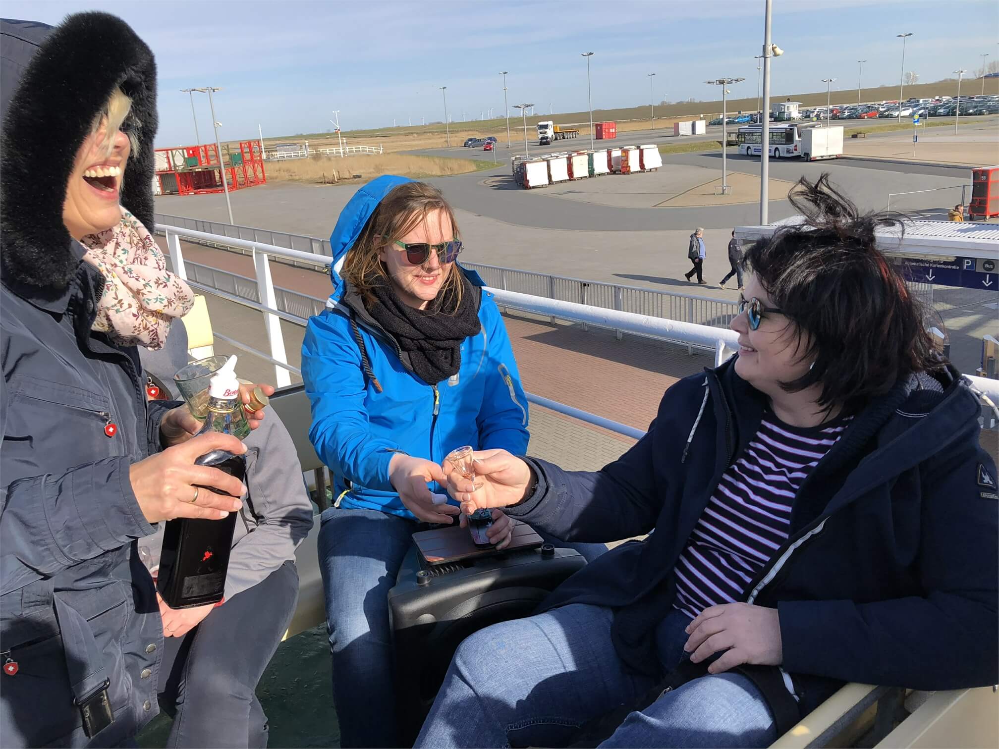 Die Stimmung auf der Bus- und Fährtour war sehr gut. Das lag sicher auch an der guten Verproviantierung und natürlich am tollen Wetter.