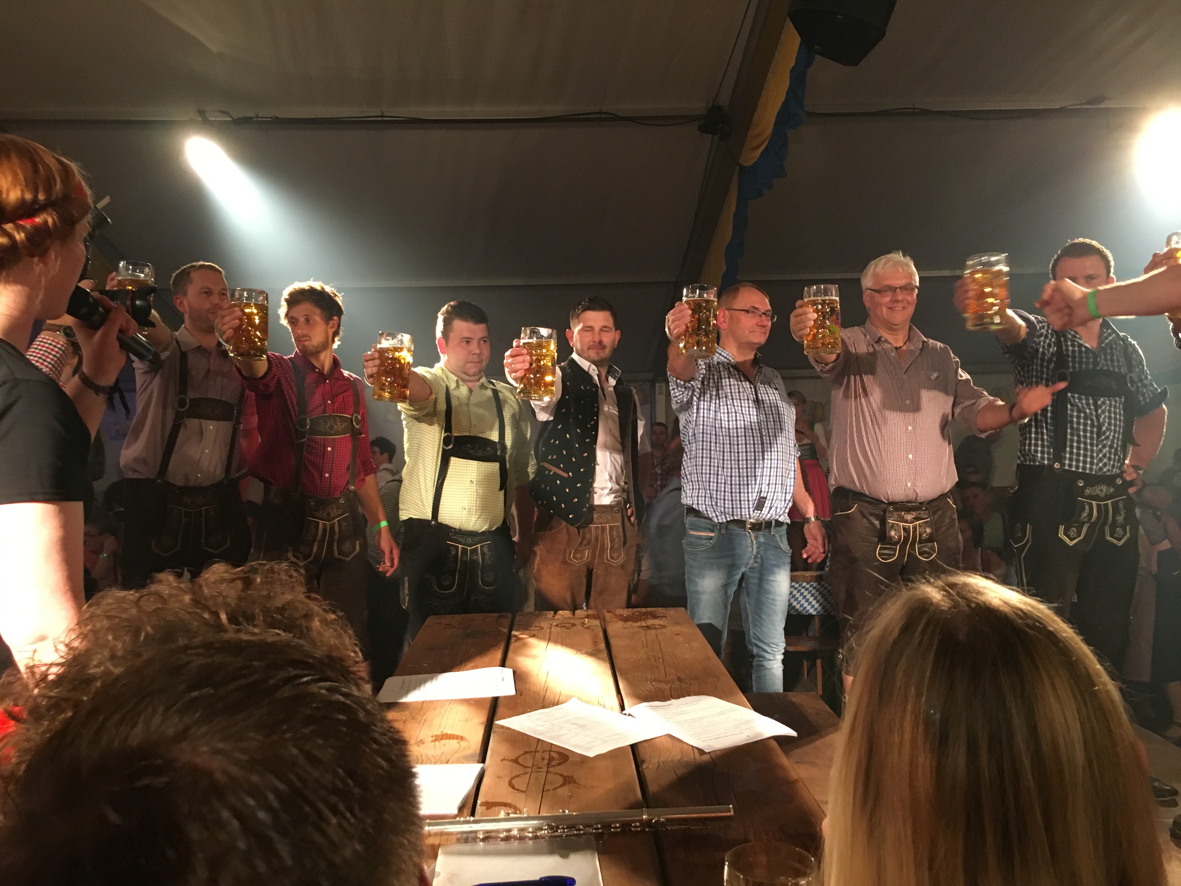 Schunkeln, tanzen und auf den Bänken stehen: Die Musiker um Junker Harke und Dirigent Ralf Mahler brachten jeden Besucher in Feierlaune. Bürgermeister Nils Anhuth stach als fescher Bayernbuur das Fass Freibier an. Drei kräftige Schläge und der Gerstensaft floss in die Krüge. Anhuth wünschte den rund 800 Gästen frohe Stunden, stieß mit einem gefüllten Bierkrug an und eröffnete damit das Fest. Kräftig zur Seite standen ihm beim Fassanstich der Vorsitzende der Harkebrügger Musikanten, Jan Block, die Moderatoren des Abends, Markus Block und Eva-Maria Oeltjenbruns.