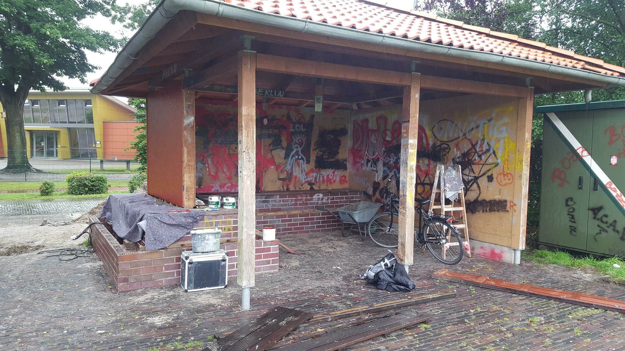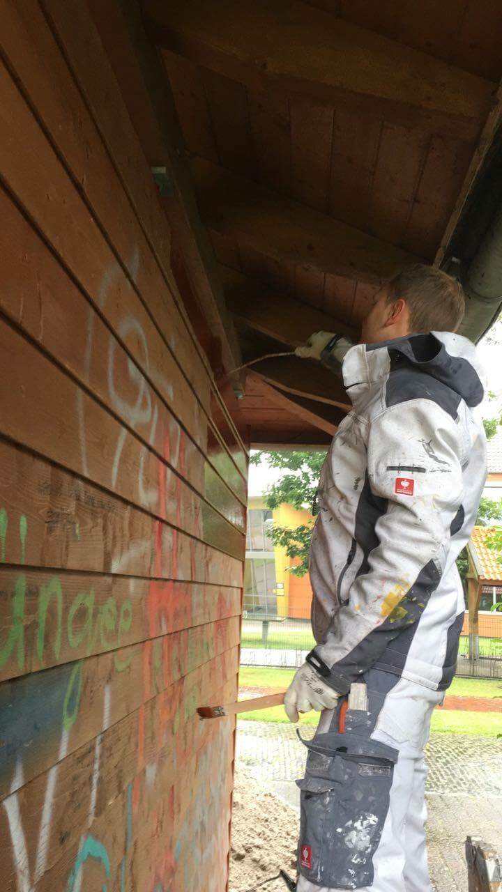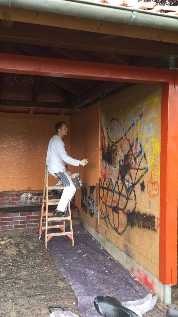Die Jungs vom 2. Kreis waren Samstag wieder fleißig dabei. Wie man sieht hat die Schutzhütte in den Jahren sehr gelitten, aber zumindest einem Brandanschlag standgehalten. Wir hoffen mal, dass unsere Jugend nach der Renovierung sorgsamer damit umgeht. Zumindest helfen ja einige auch mit und das finden wir klasse!!!